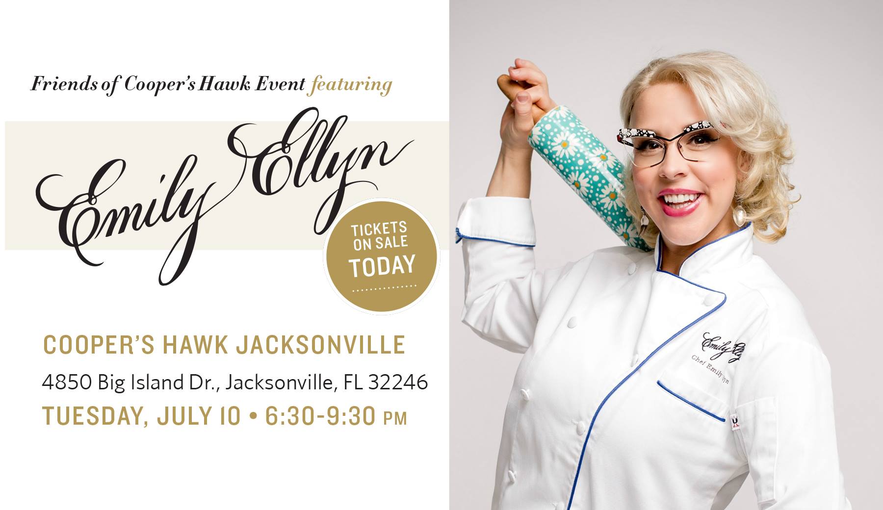 Relax and dine as Emily puts her unique spin on classic dishes paired with award-winning Cooper’s Hawk Wines. You won’t want to miss this delicious, high-energy event!
